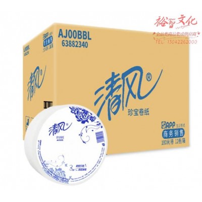清风大卷纸3层180米12卷大盘纸 SKU:yzwhyp830993