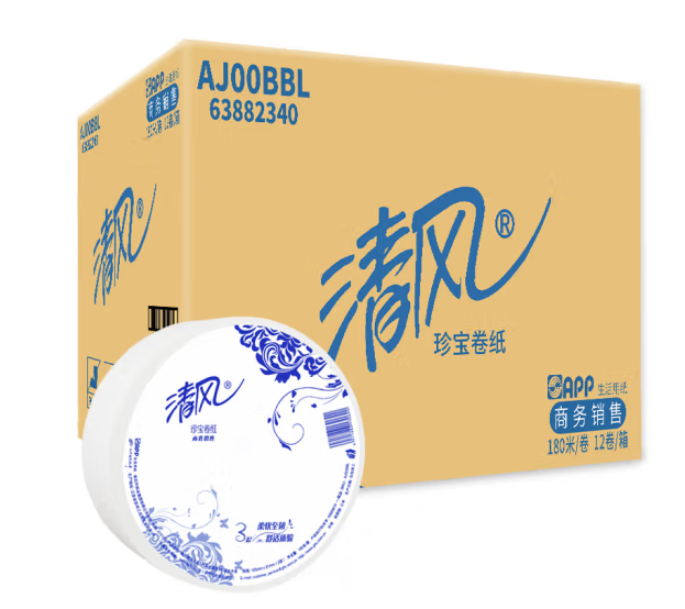 清风大卷纸3层180米12卷大盘纸 SKU:yzwhyp830997
