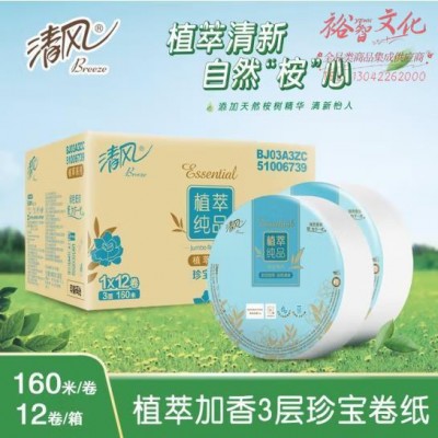 清风大盘纸大卷纸厕纸珍宝纸巾高档植萃加香酒店专用 整箱12卷 BJ03A3ZC-12 SKU:yzwhyp831022