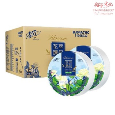 清风【BJ04A7HC】花萃臻品4层珍宝卷纸 大盘卷纸 4层3卷/提*4提/箱(整箱销售) SKU:yzwhyp831024