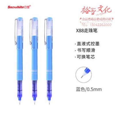 白雪(snowhite) X88 可换笔芯直液笔速干走珠笔巨能写针管型中性笔学生用笔蓝色0.5mm12支/盒 SKU:yzwhyp831299