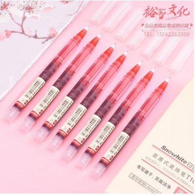 白雪(snowhite)直液式笔中性笔速干水笔 签字笔巨能写0.5mm全针管红色走珠笔 12支/盒T16 SKU:yzwhyp831318