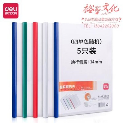 得力(deli)5只A4加宽加厚14mm透明拉杆夹抽杆夹文件夹 学生考试产检报告资料收纳 单色随机 SKU:yzwhyp831411