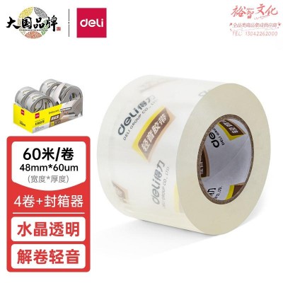 得力(deli) 30046静音封箱胶带套装48mm*60m*60μm(1盒/pcs)(水晶) SKU:yzwhyp831421