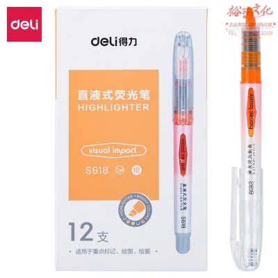 得力(deli)S618 直液式荧光笔 重点圈划标记笔 荧光记号笔(橙) SKU:yzwhyp831541