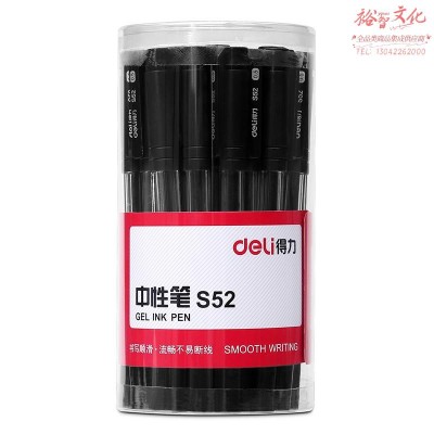 得力 S52中性笔0.5mm半针管(黑)(30支/桶) SKU:yzwhyp831655