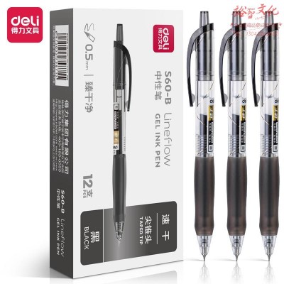 得力 S60-B扩容速干办公中性笔0.5mm尖锥头(黑)(支) SKU:yzwhyp831862