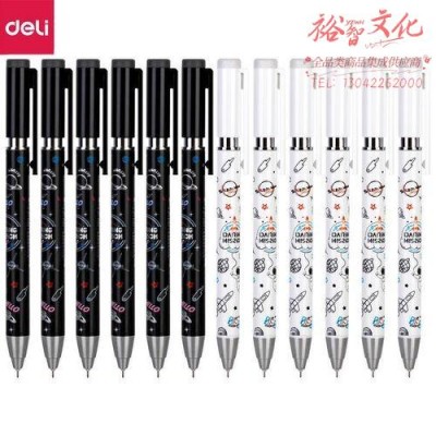 得力 A611 中国航天学生按动中性笔0.38mm全针管(黑)(12支) SKU:yzwhyp831998