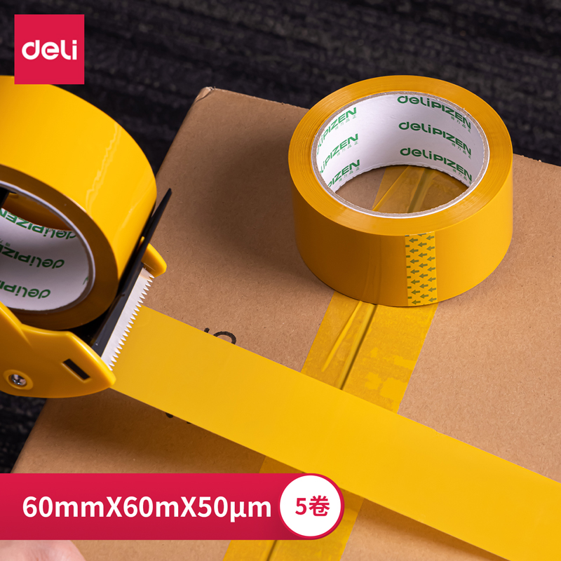得力(deli) 品正33977封箱胶带60mm*60m*50μm(黄色)(5卷/筒) SKU:yzwhyp832187