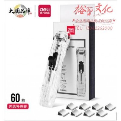 得力(deli)办公装订推夹器套装(推夹器 60枚补充夹) 可夹纸张数40张 透明白33183SKU:yzwhyp832334