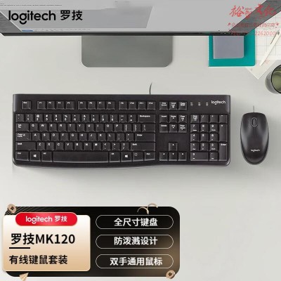 罗技(Logitech) MK120 有线键鼠套装 USB口电脑笔记本商务办公键鼠套装 MK120黑色 SKU:yzwhyp832685