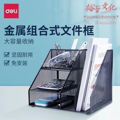 得力 79075 多功能金属文件框 带笔筒资料筐 黑色(个) SKU:yzwhyp832938