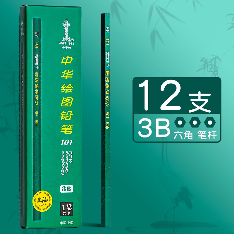 首页 > 办公用品 > 文具 > 中华 101-3B 绘图铅笔学生铅笔美术素描3B铅笔12支/盒 SKU:yzwhyp832969