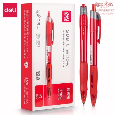 得力(deli)S08 臻顺滑办公中性笔 0.5mm 弹簧头 红色 单支 SKU:yzwhyp832990