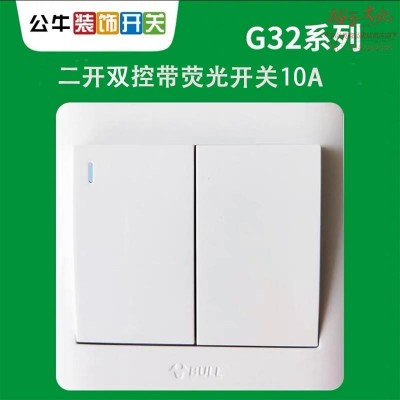 公牛 墙壁开关面板 86型二位双控带荧光开关面板 10A白色 G32K212 SKU:yzwhyp833017