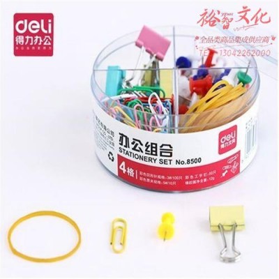 得力8500 四合一办公用品组合套装(19mm小号票夹10只 29mm回形针100只 工字钉50只 橡皮筋)SKU:yzwhyp833046