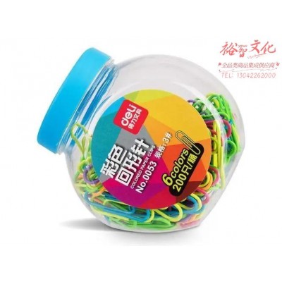 得力0053 镀镍彩色回形针 3#曲别针(200只/桶) SKU:yzwhyp833051