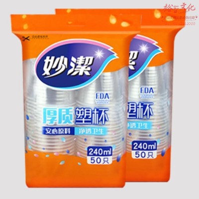 妙洁(MIAOJIE) 一次性塑料透明水杯240ml 50只/包SKU:yzwhyp833291