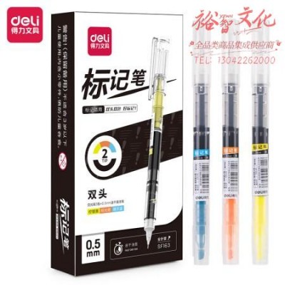 得力(deli)SF163双头 荧光笔3色 0.5mm速干直液笔 拔帽全针管 黑色12支/盒装 SKU:yzwhyp833480