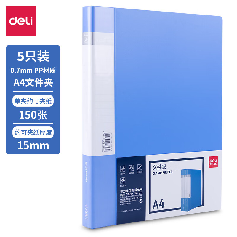 得力(deli) 33295 5只A4金属单强力夹 插页袋硬文件夹 SKU:yzwhyp833489