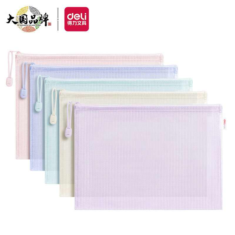 得力(deli)63481A 5只A4防水彩透网格拉链袋 彩色资料袋文件袋 SKU:yzwhyp833497