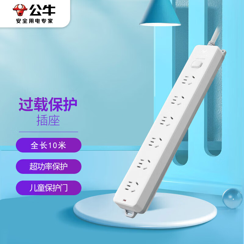 公牛(BULL)GN-107 新国标插座/插线板/插排/排插/接线板/拖线板 6位总控全长10米 超功率保护 SKU:yzwhyp833515