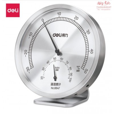 得力(deli) 8847 金属室内温湿度计 挂立两用免电池大表盘 SKU:yzwhyp833537