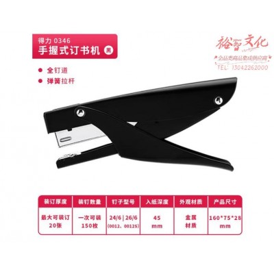得力(deli) 0346 20页手握式金属质感耐用订书机 适配12#订书钉 黑色 SKU:yzwhyp833562