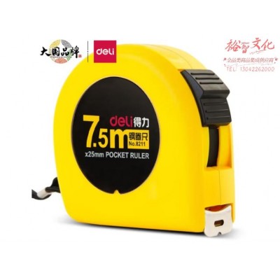 首页 > 办公用品 > 文具 > 得力(deli)8211 7.5m锁定功能钢卷尺 木工尺装修测量尺子 SKU:yzwhyp833590