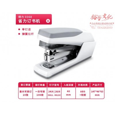 得力(deli)0368 20页省力订书机 适配24/6(12#)及26/6订书钉 白色 SKU:yzwhyp833656