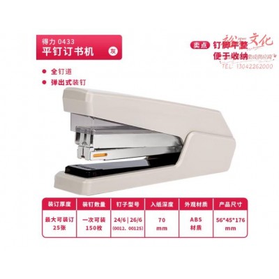 得力(deli) 0433 平钉省力型订书机 单指按压平钉包角 灰色 SKU:yzwhyp833660