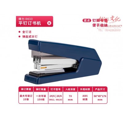 得力(deli)0433 平钉省力型订书机 单指按压平钉包角 蓝色 SKU:yzwhyp833661