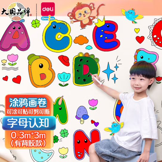 得力(deli) YC304-4 涂鸦画卷字母主题 带背胶图画本 0.3*3米 SKU:yzwhyp833722