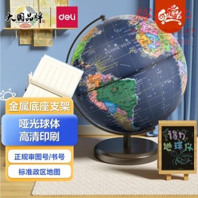 得力(deli)Ф30cm大号金属底座儿童学生用办公地球仪 高级哑光质感 教学研究摆件六一儿童节生日礼物 18121 SKU:yzwhyp833751
