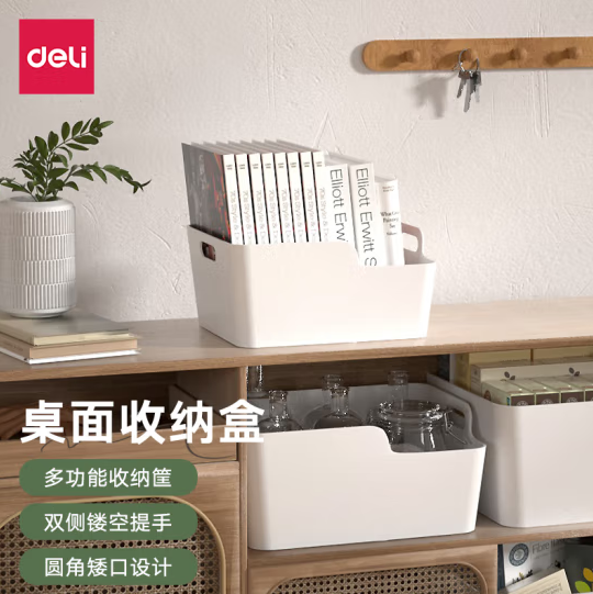 得力(deli)PK109桌面收纳盒 收纳筐收纳篮 白色大号 SKU:yzwhyp833784