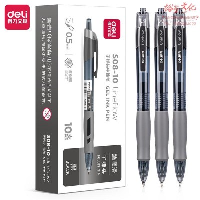 得力 S08 臻顺滑办公中性笔0.5mm弹簧头(黑色)(支)SKU:yzwhyp833801