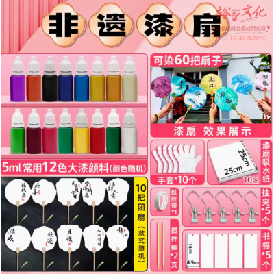非遗漆扇漂漆材料包diy颜料加厚宣纸团扇大漆摆摊空白文创扇子畅玩漂漆套装SKU:YZB101050