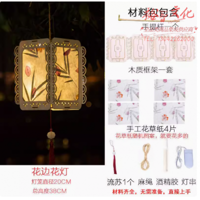 首页 > 办公用品 > 教具 > 巨联/JULIAN中秋节中式灯笼古风手工diy材料包儿童手提自制花灯发光装饰宫灯花边款