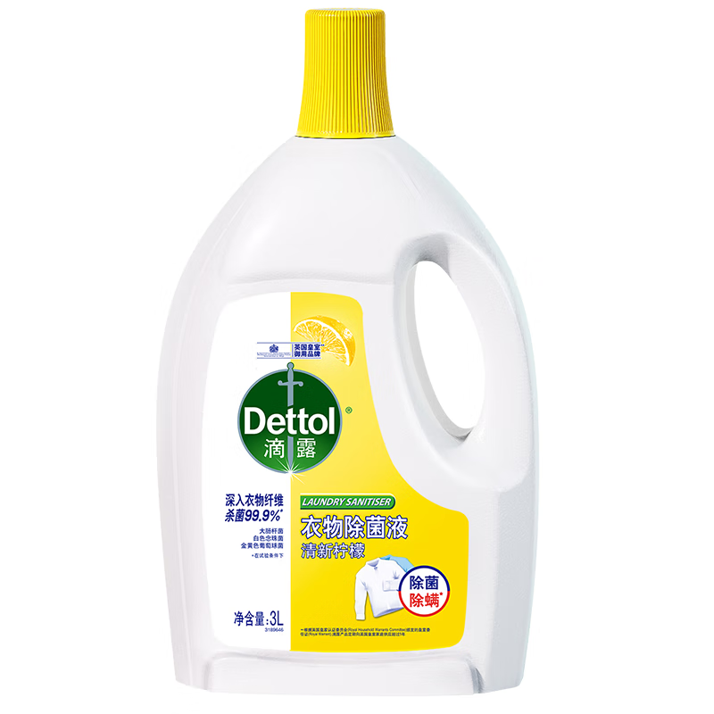 滴露(Dettol)衣物消毒液柠檬3L 衣物除菌液杀菌99.9% 高效除螨 可配洗衣液用SKU:yzwhyp833844