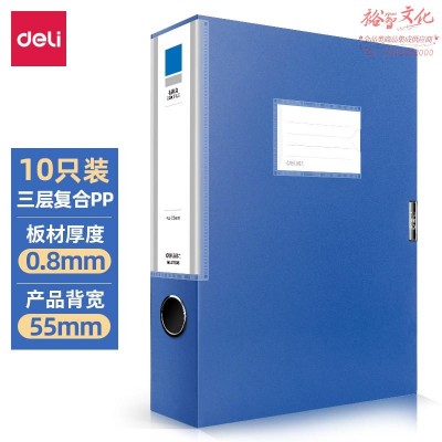 得力(deli)10只55mmA4粘扣档案盒塑料文件盒 文件收纳资料盒 办公用品 升级背条孔槽 27036蓝色 SKU:yzwhyp833879