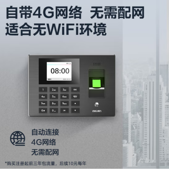 得力(deli) 3960 智能云考勤机 指纹识别打卡机 自带4G网络版 SKU:yzwhyp833957