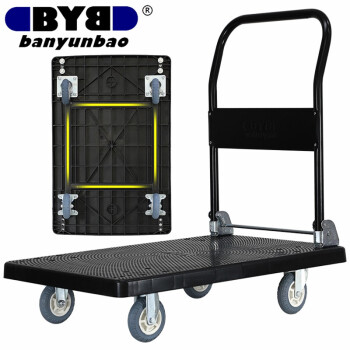 搬运宝(BYB)超强轻音小推车平板车手推车折叠手拉车拖车拉货车塑料搬运车大号90X60cm 承重800斤 JQ-59H炫黑 SKU:yzwhyp834194