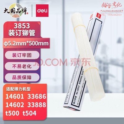 首页 > 办公用品 > 文具 > 得力(deli)3853 自动财务凭证装订机专用铆管500mm 100支/盒 (适用于得力3880 33888 14601 33480) SKU:yzwhyp834568