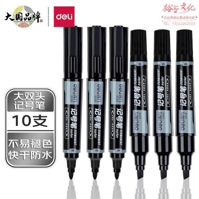 得力(deli) 大双头多用记号笔签字笔 勾线笔会议笔马克笔 10支/盒 黑色 S555SKU:YZB101118