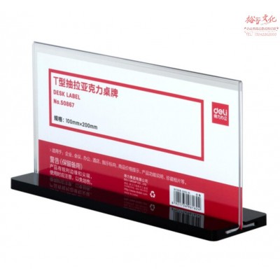 得力 50867 T型抽拉亚克力桌牌 (透明)SKU:yzwhyp834995
