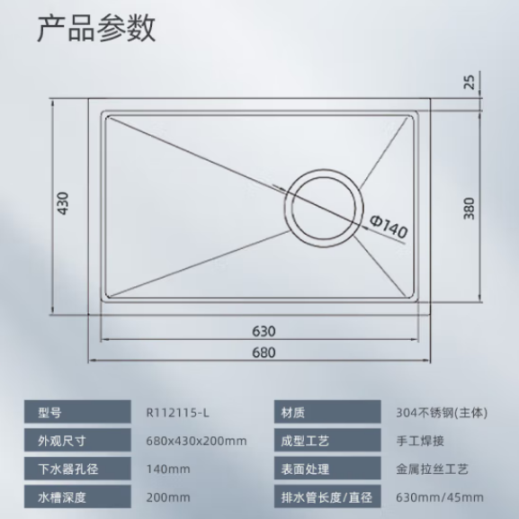 首页 > 用具 > 其他厨房用具 > 荣事达(Royalstar)304不锈钢手工厨房水槽 洗菜盆一体盆洗碗池 大容量单槽R112115-L 68*43 落槽 右侧加大排水 不含安装 SKU:yzwhyp835850