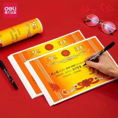 得力(deli)A4 奖状纸 获奖证书 有字款中小学生表扬表彰奖状教师通用 加厚铜版纸 50张/(包)24827SKU:yzwhyp835932