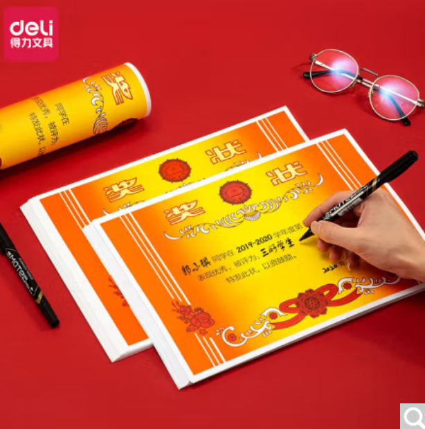 首页 > 办公用品 > 教具 > 得力(deli)A4奖状纸获奖证书 有字款中小学生表扬表彰奖状教师通用 加厚铜版纸 50张/包SKU:yzwhyp835959