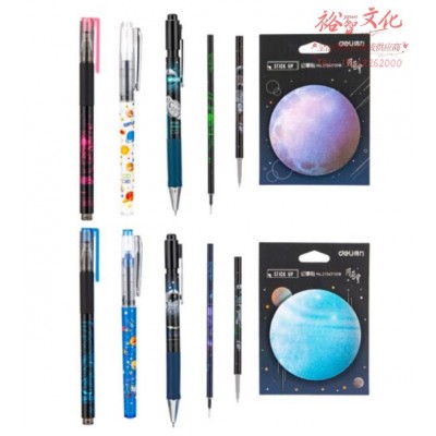 得力6122(deli)×航天少年文具盲袋 0.5mm黑色按动中性笔/便利贴/拔帽签字笔/笔芯套装 盲盒笔 签字笔水笔 SKU:yzwhyp836290