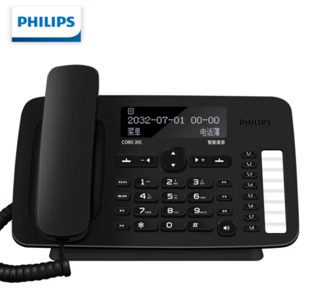 首页 > 通信设备 > 普通电话机(不包含移动电话) > 飞利浦(PHILIPS)CORD395录音电话机 固定座机 办公家用 自动 手动录音2700小时 可存1000组中文电话本 黑色 SKU:yzwhyp836346
